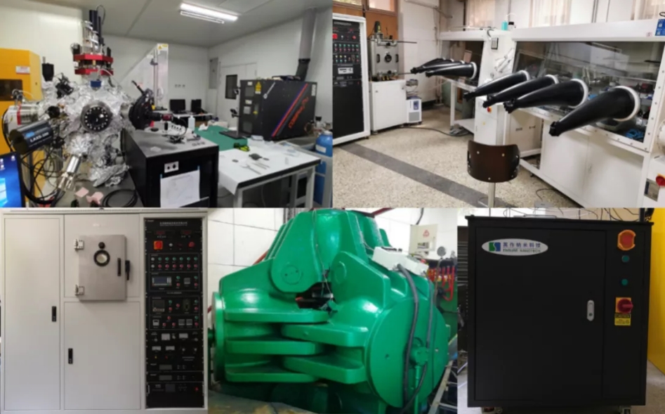 各种材料制备设备:高温高压液压压机、脉冲激光沉积系统、磁控溅射系统、原子层沉积系统、电化学沉积系统、手套箱。
