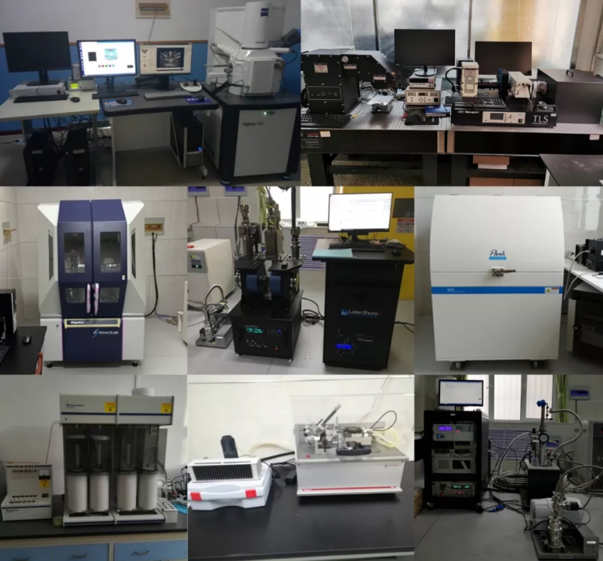 各种物理性能测试设备:热场发射扫描电镜、太阳能电池性能测试系统、X射线外延薄膜衍射仪、霍尔效应测试系统、原子力显微镜、多站扩展式比表面积及孔径分析仪、精密摩擦磨损测试仪、综合物性测试系统等。