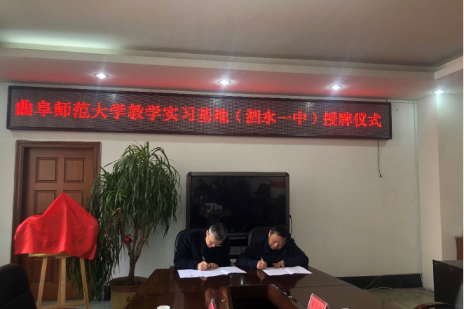 12月22日,NBA投注平台 教育实习基地签约、挂牌仪式在泗水一中举行。NBA投注平台 党委常委、副校长夏云杰,泗水一中校长杜宏伟出席仪式,教务处、NBA投注平台 等单位负责人,泗水一中校领导,教师代表等参加了活动。