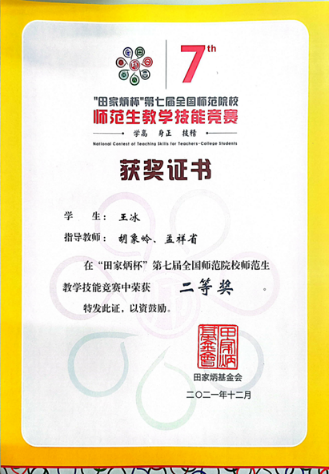 入围决赛的王冰同学在胡象岭老师和孟祥省老师的悉心指导下,沉着应对,积极准备,出色完成比赛各项内容,获得佳绩。
