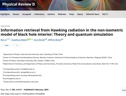 尽管孤岛规则表明黑洞蒸发是一个幺正过程,但是量子信息如何从黑洞释放出来,以及释放的信息能否从辐射的量子态中重现出来,即黑洞信息的解码问题目前尚没有明确的答案。课题组结合终态投影模型、黑洞内部非同构映射模型与Hayden-Preskill思想实验,系统探讨了从Hawking辐射中恢复信息的机制,并展示了在该框架中Page时间可以自然涌现,为理解Page时间提供了新的视角。课题组还讨论了信息恢复的“退耦合条件”,验证了该模型计算的黑洞熵与量子极值面方法所得结果相一致,并研究了如何在非同构映射模型的Hayden-Preskill协议中应用Yoshida-Kitaev解码策略。课题组进一步在IBM七比特量子计算机上对概率性策略和Grover搜索策略进行了仿真模拟,验证了解析结果,并确认在非同构映射模型中信息恢复的可行性。该研究成果发表在PRD。