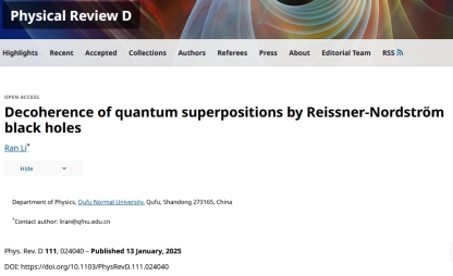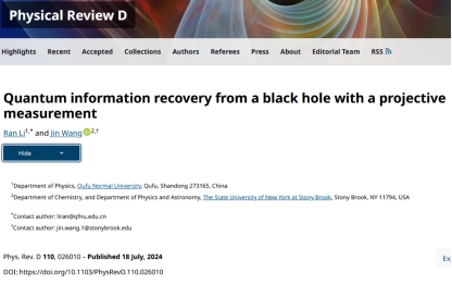 李然副教授在广义相对论和黑洞理论方向取得一系列研究进展,相关成果发表于《Physical Review D》和《European Physical Journal C》等国际学术期刊,包括PRD论文5篇和EPJC论文1篇,并指导本科生王力强同学在PRD发表论文1篇。上述研究成果均以NBA投注平台