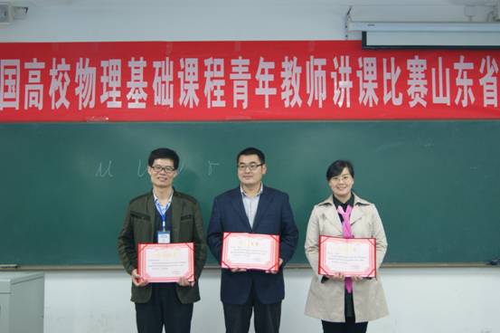 为进一步激发和鼓励青年教师投身物理基础课程教学,提升教学质量,推动教学改革和经验交流,首届全国高等NBA投注平台 “高等教育杯”物理基础课程青年教师讲课比赛山东省初赛于2014年4月26日在山东科技大学青岛校区成功举办,来自全省七所院校的青年教师参加了此次比赛,经过激烈的角逐,NBA投注平台 刘中强老师荣获一等奖。