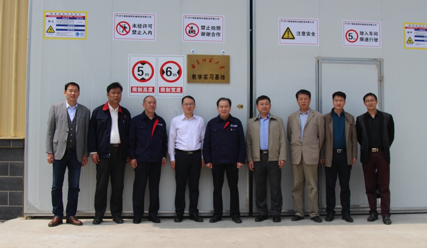 相关领导老师、济宁落陵盛源控股有限公司党总支书记王政、副总经理欧阳金矿以及落陵春辉机械制造有限公司经理孟祥学等主要领导。揭牌仪式之前,首先与公司领导进行简要会谈,大家对基地设置事宜进行了交流,并就新旧动能转换及企业技术创新升级进行了探讨。会谈之后举行了实习基地揭牌仪式并参观了公司的生产和装配车间。