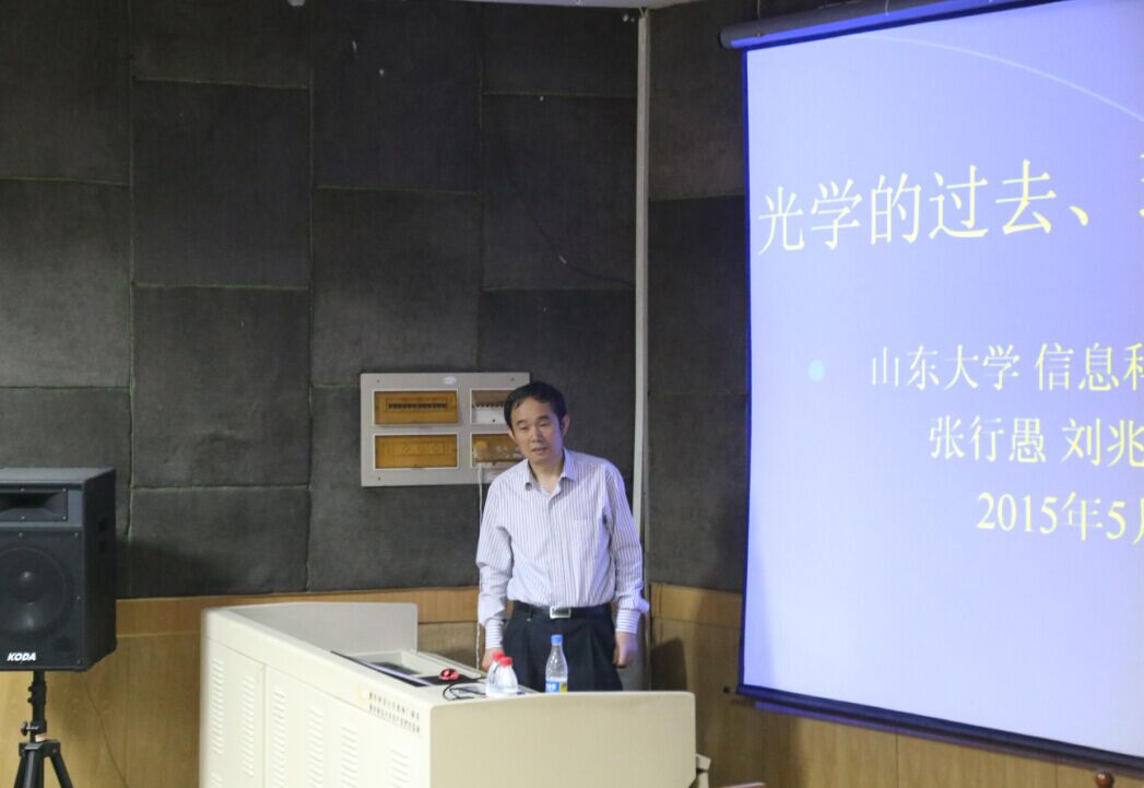师生做了一场题为“光学的过去、现在和未来”的学术报告。张教授从生活中的一些常见光学现象讲起,详细地讲述了光学理论的发展历程,通过大量的图片展示呈现了光学知识、激光技术对人类科技进步的巨大作用。最后,张教授还对山东大学信息科学与工程NBA投注平台