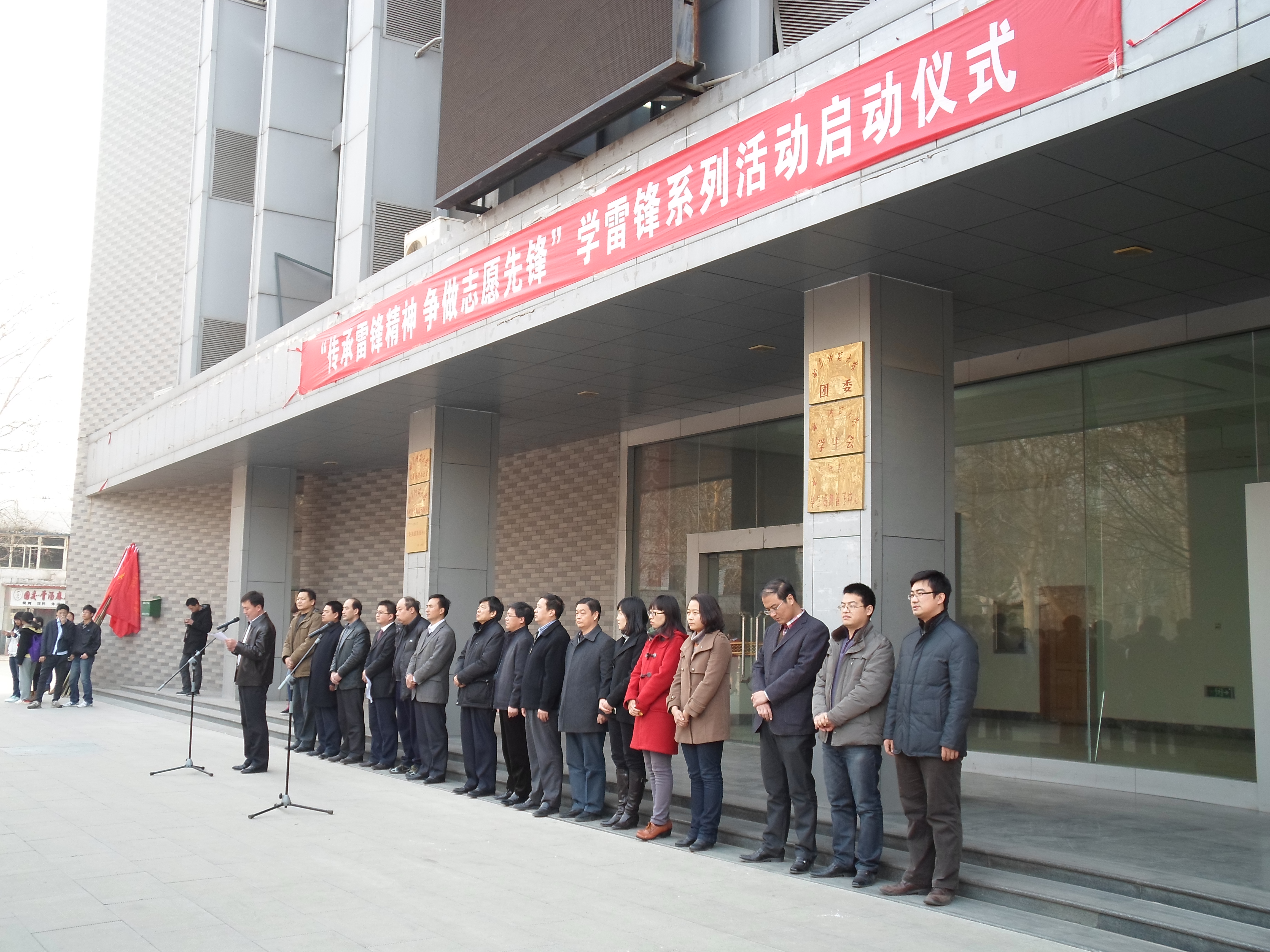 下午四点半,仪式在《学习雷锋好榜样》的歌声中拉开了序幕。校党委副书记刘新生教授发表了重要讲话,着重强调了雷锋精神的时代价值与现实意义,号召我们大学生把雷锋精神渗透到生活的点点滴滴中。随后,志愿者代表发言,进一步激发了同学们学习雷锋的热情。仪式最后,刘书记将学雷锋志愿团队的旗帜交给了各NBA投注平台