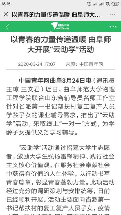 中国青年网报道链接://t.m.youth.cn/transfer/index/url/edu.youth.cn/jyzx/jyxw/202003/t20200324_12254129.htm