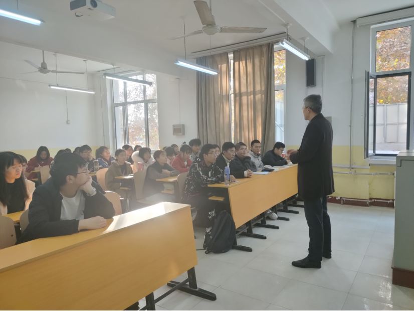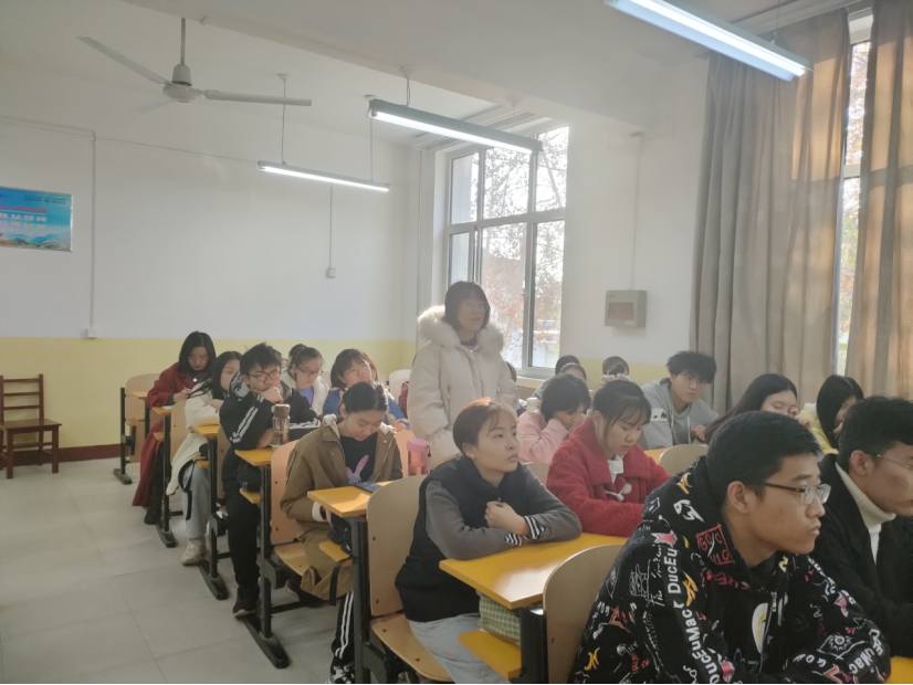 班会伊始,满忠晓向同学们介绍了我院物理学专业的优势,增强了学生的专业自信。随后,满忠晓就本专业的考研、就业情况等做了详细介绍,并鼓励同学们能够以积极的状态投入学习。最后,满忠晓和现场同学进行了互动,解答了大家关心的问题。
