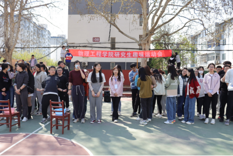 为培养研究生户外运动兴趣,增进交流,丰富业余生活,3月29日,物理工程院研究生趣味运动会顺利举行。本次趣味运动会由研究生会主办,一百余名研究生报名参加,研究生辅导员贾金彪、韩士轩老师出席并观看了比赛。