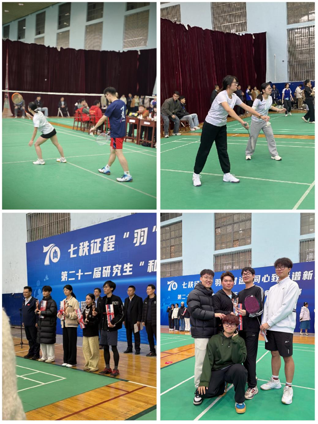 研究生羽毛球队积极备赛,奋勇拼搏,获得团队三等奖。