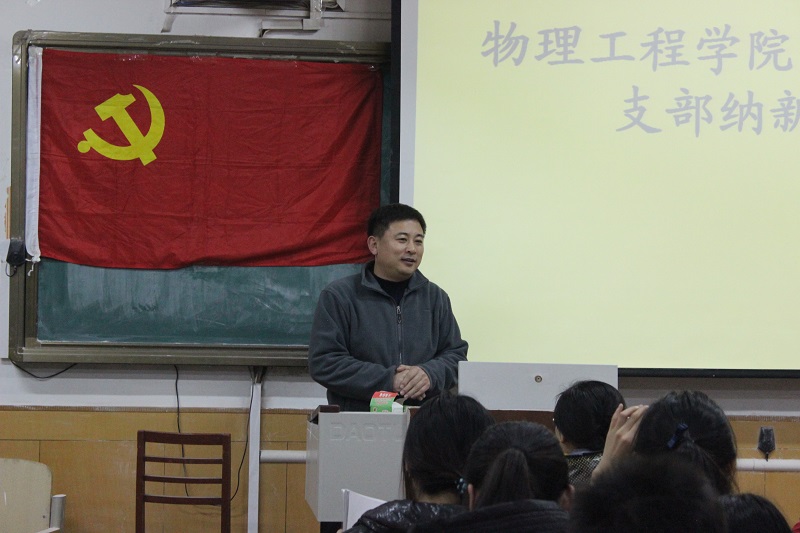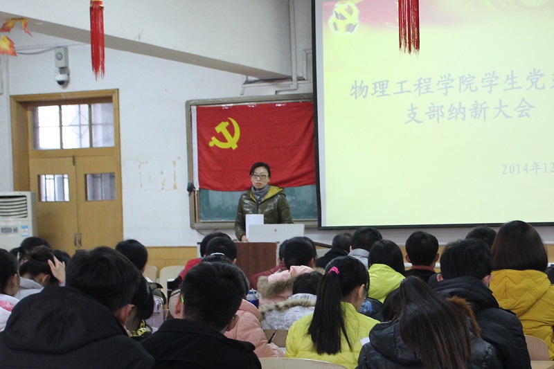 院楼404教室举办纳新大会。会议由学生党支部书记王琼老师主持,参加会议的有学生党支部全体党员和部分入党积极分子。党总支副书记孙金杰老师也参加了会议。
