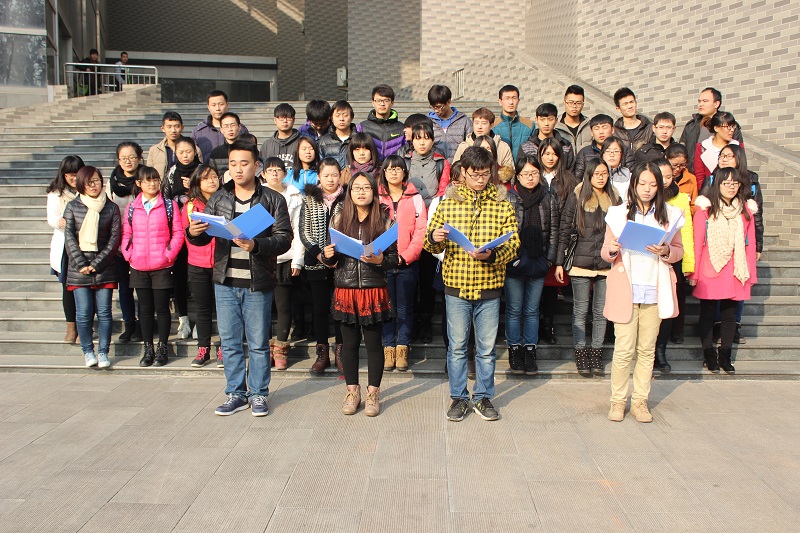 12月7日中午,NBA投注平台 在大学生活动中心礼堂及其南侧广场进行了“辞旧迎新,颂响中国梦”纪念“一二·九”大型朗诵比赛的第二次彩排。