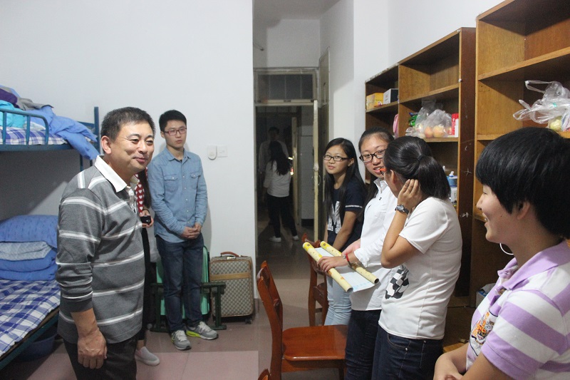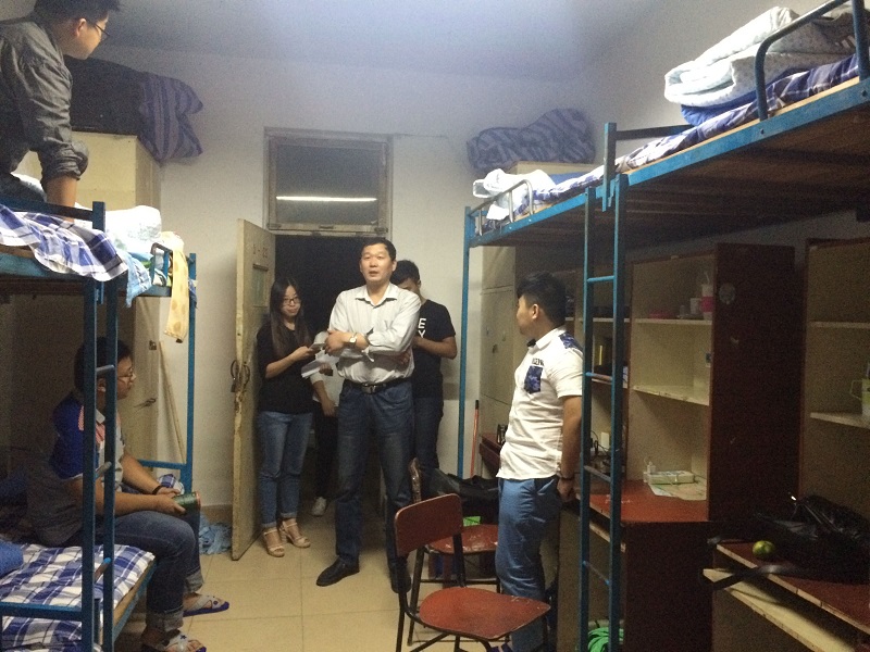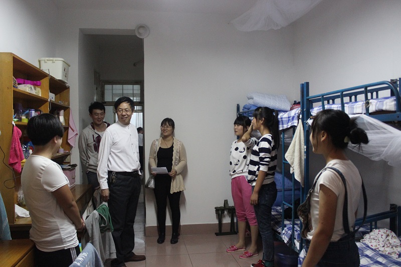 领导老师们依次前往每一个新生宿舍,与新生亲切交谈并嘱咐大家要注意财务、交通安全,相亲相爱,互帮互助,尽快适应新生活。对于新生们提出的问题,领导老师们要求学生干部们尽快着手解决,尽快做出答复。