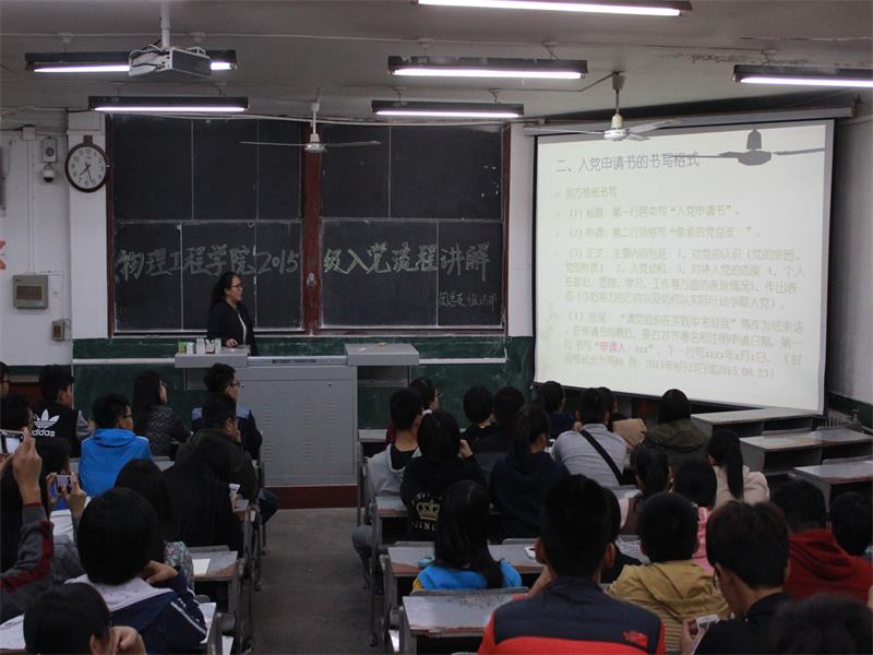 团总支主办,组织部承办的2015级入党流程讲解讲座在院楼二阶一、二阶二以及三阶二教室同时举行。2015级辅导员赵红艳、聂景兰、王梅,各班班级助理和2015级部分同学出参加了此次讲座。