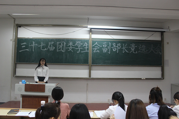 第三十七届团委、学生会副部长竞选大会在实验中心A202举行,主席团成员及各部门部长担任评委,各部门参选干事参加了竞选活动。