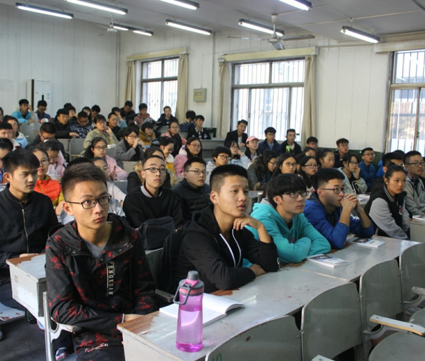 学生会主办,学生会纪检部、秘书处、卫生部、宿管部、勤工助学部五个部门共同承办的“导航之星”学生手册讲解活动在院楼四个阶梯教室同时举行,2017级全体新生参加本次活动。