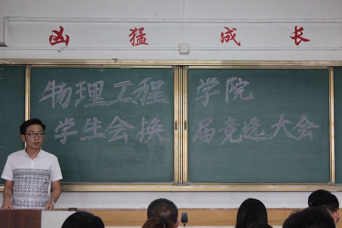 36届学生会取得的成绩表示肯定,向每位学生干部的辛勤付出表示感谢。在之后的正式竞选中,竞选人发表演讲,就参选原因和当选后规划进行详细阐述,同时对老师们提出的问题认真作答。