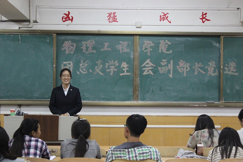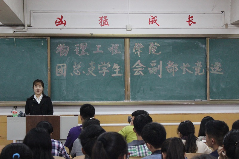 团总支学生会副部长竞选演讲于院楼404教室举行,评委由学生会主席团成员及各部部长担任。