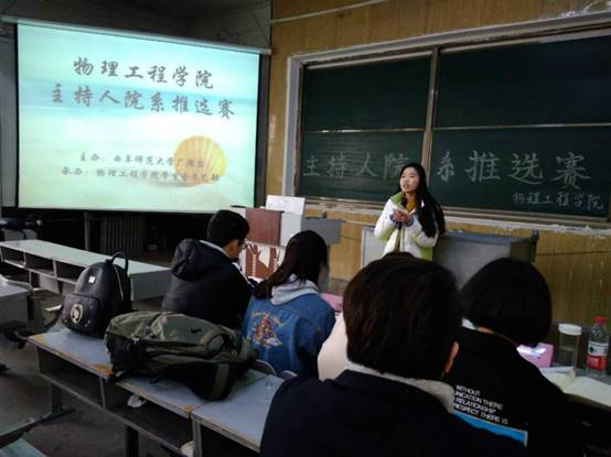 学生会文艺部承办的“金声语振”校园主持人大赛院系推选赛于院楼三阶一教室举行。NBA投注平台