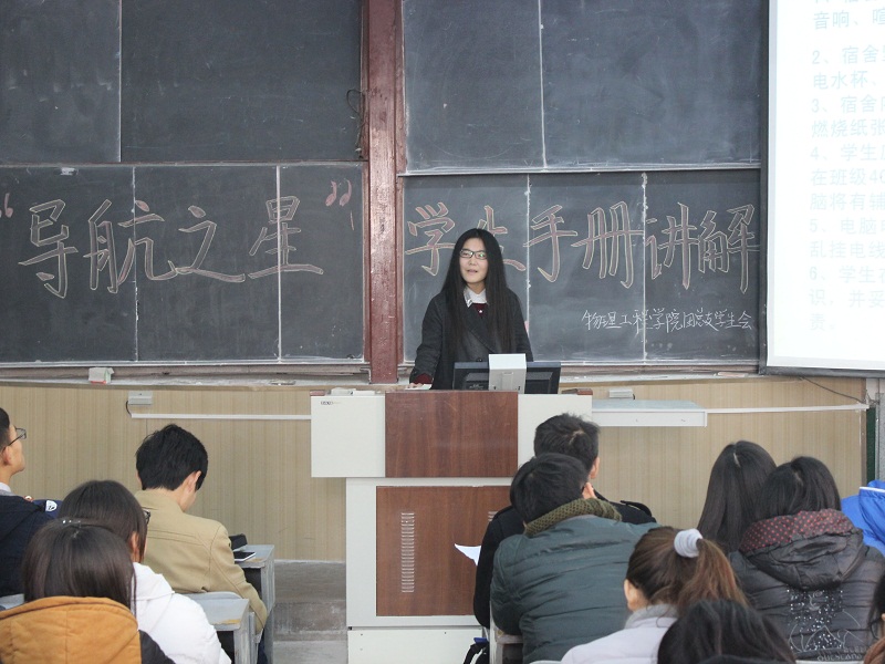 本着“贴近实际、贴近生活、贴近学生”的原则,讲解活动改变了以往各个部门照本宣科、通读条例的刻板做法,改成案例教学的宣讲模式,从学生实际生活中存在的各种观念和行为挑选出经典案例,结合《学生手册》的相关要求做成PPT文件,然后有针对性地为大一新同学讲解。首先,学生会纪检部、卫生部、宿管部、秘书处、勤工助学部等部门分别对纪律考勤、违纪处分、卫生检查、宿舍检查与安全、评奖评优、学习测评、综合测评、奖助学金等问题做了详细的介绍,之后,对大一同学所关心的问题进行了解答,纠正了“六十分万岁”的错误学习观念,澄清了同学们对大学生活的某些认识误区,通过《学生手册》的讲解使同学们了解到学风的重要性,学会从自身做起,努力让优秀成为自己的习惯。