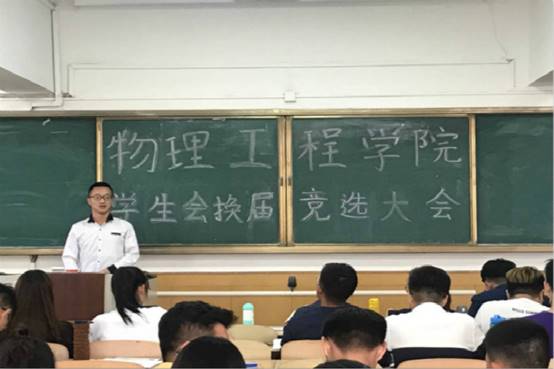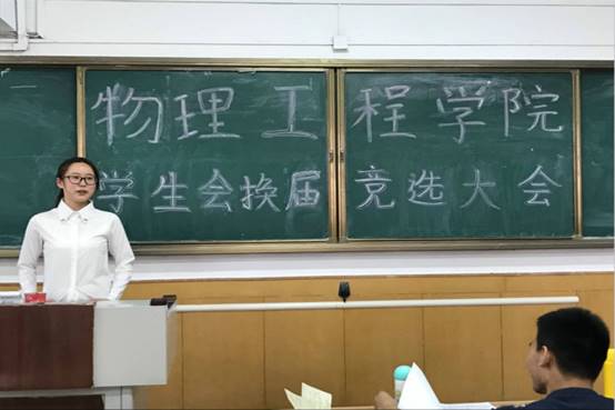 大会伊始,由团委学生会办公室主任宣布大会流程,随后竞选大会开始,各个部门干事轮流上台对自己任职进行简述,表达自己对部门深厚的感情以及自己任职一年的收获。主席团成员对台上竞选的干事进行简短提问考察,竞选人员对所提问题认真回答并表达自己的想法。此次竞选气氛热烈,有条不紊。