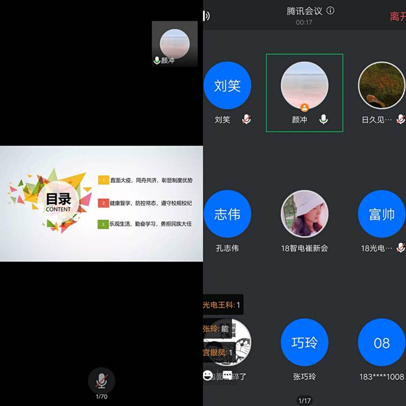 利用腾讯会议组织开展2020-2021学年“开学第一课”主题班会。辅导员李爱国、颜冲、李靖靖分别主持班会,全体同学参加。