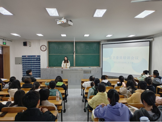 于物理楼三阶二召开宿卫委员培训会议。辅导员孔瑞出席会议,2022级各班宿卫委员、全体舍长参加会议。