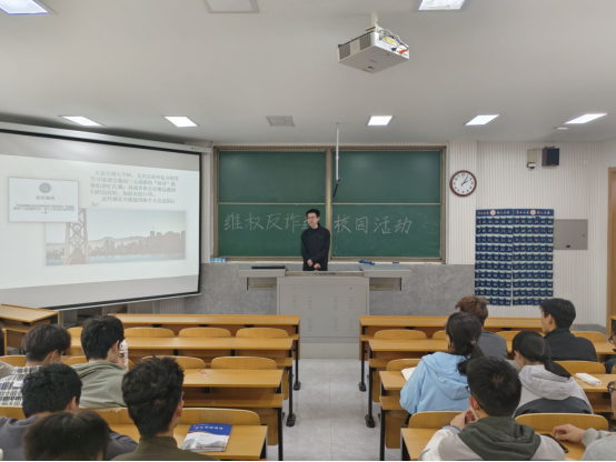 活动过程中,史永鹏通过PPT向同学们介绍了反诈骗知识,结合相关案例讲解维权反诈的校园背景;他重点讲解维权方法,强调用法律武器维护自身合法权益,介绍维权反诈的重大意义,说明维权反诈是维护自身合法权益的必要手段,也是建设公平社会的必要要素。活动最后,史永鹏向在场同学发起号召,呼吁在场同学理智判断,提高自我保护意识,坚决维护自身财产安全。