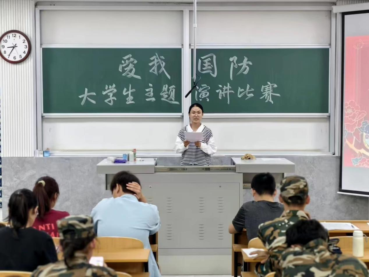 于物理楼二阶二举办“爱我国防,共庆华诞”演讲比赛。2024级全体新生积极参加活动。