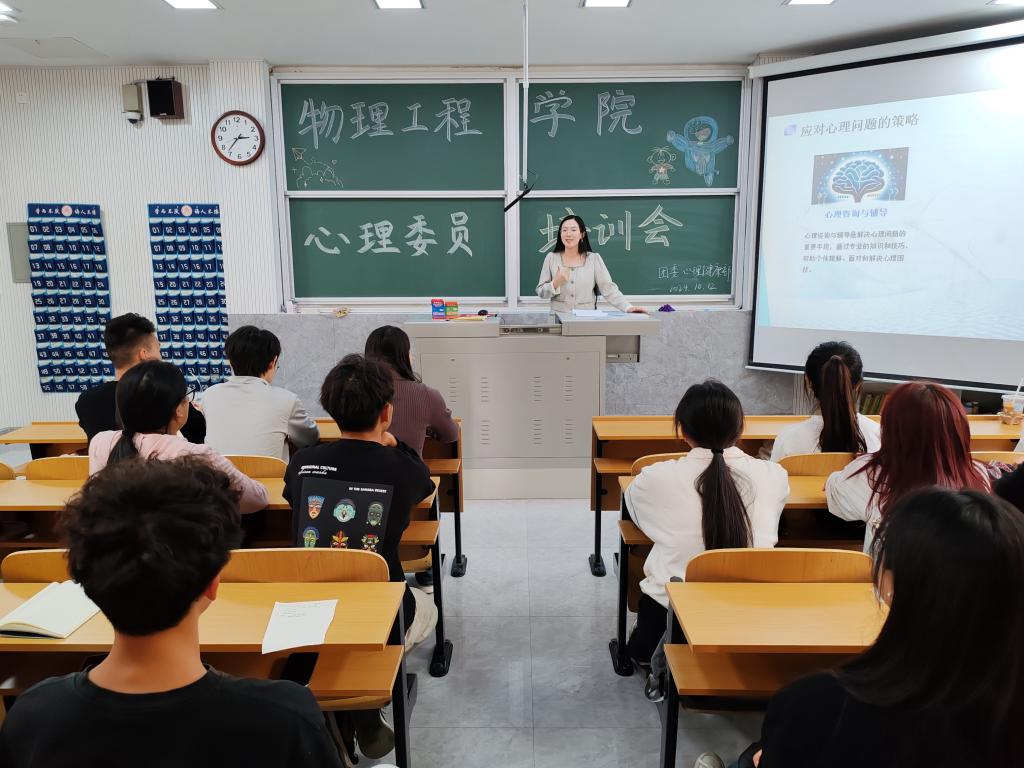 心理健康教育体系中的关键角色及其所肩负的职责,既是教师与学生之间的重要桥梁,也是同学们心理支持和情感倾诉的主要对象。在后续的培训中,针对大学新生入学适应、心理委员的工作职责、大学生常见心理问题及其应对策略进行了深入讲解。鼓励班级心理委员对同学们保持关注,尤其要做好信息收集汇报、初步评估和支持,同时在做好班级心理健康教育工作的同时,也要关注自身的心理健康状态。