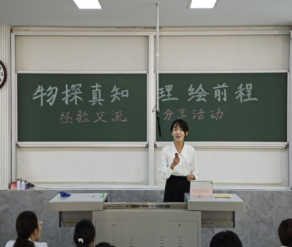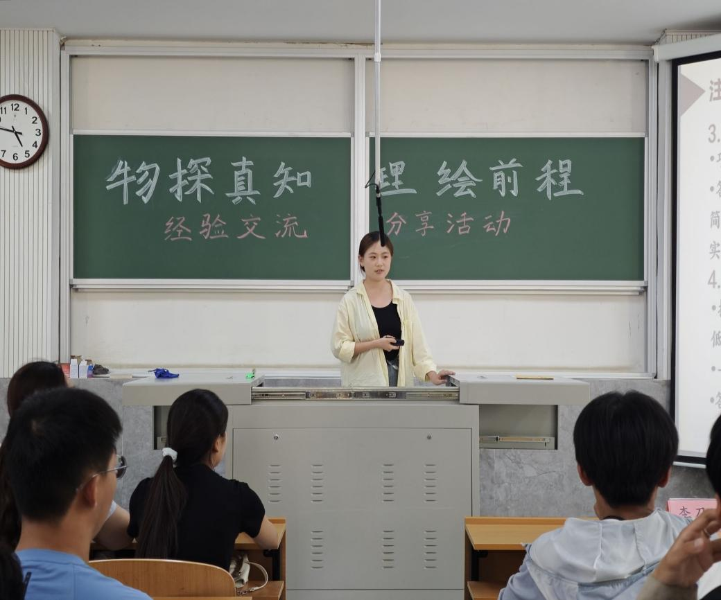 于物理楼二阶二举办“物探真知,理绘前程”物理教学竞赛经验分享会。会议邀请戚乐融、李召涵两位竞赛学生做经验分享,各年级学生积极参加。