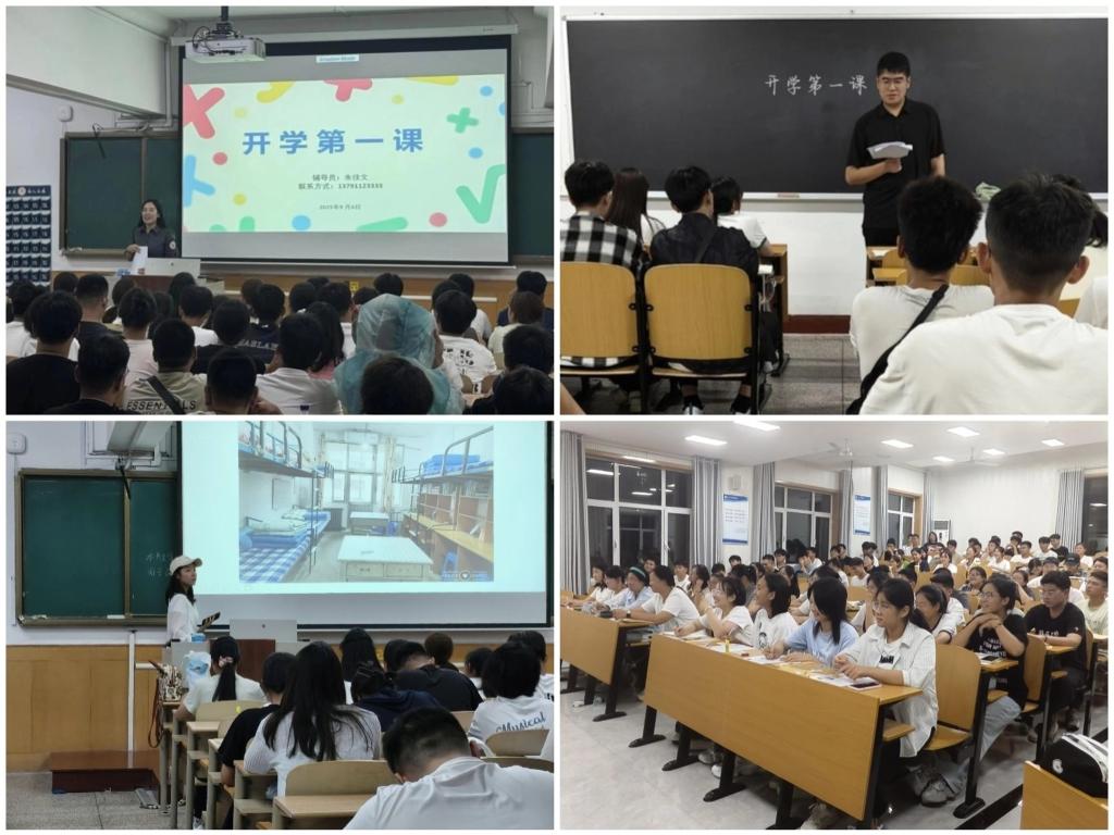 分别于物理楼二阶一、二阶二、402教室、409教室组织召开2025级新生“开学第一课”主题班会。班会由辅导员朱佳文、李建涛主持,2025级全体新生参加班会。