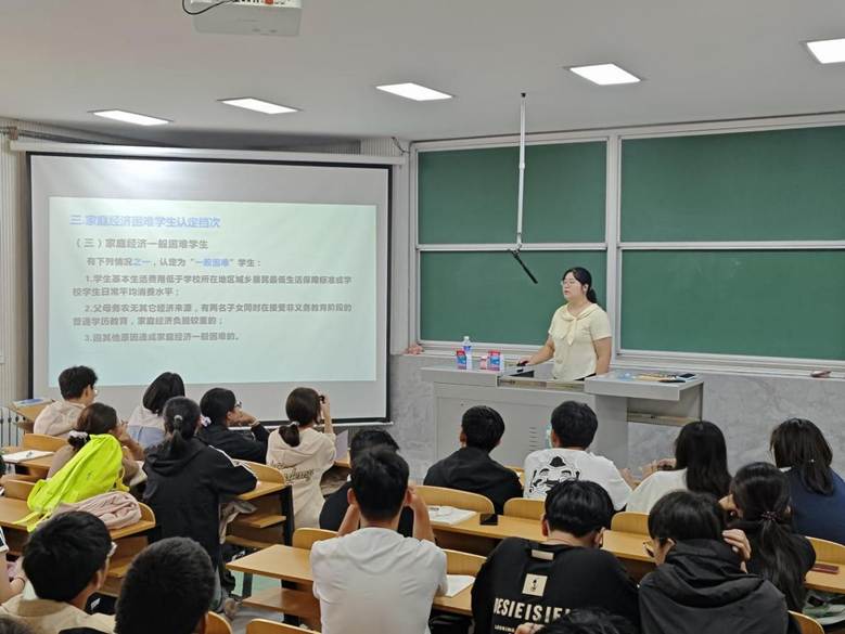 于物理楼三阶一召开家庭经济困难评议小组培训会。各班级评议小组成员参加会议。