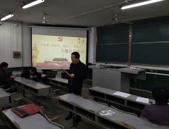 2018年11月28日,教工党支部全体党员在物理楼二阶一教室开展了“学英雄、学榜样、践初心、勇担当”主题党日活动。活动由教工党支部书记胡象岭同志主持,全体党员参加。