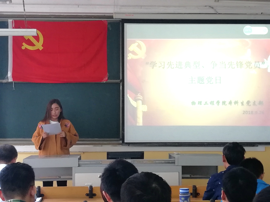 活动伊始,支部书记王琼传达了上级关于“学习先进典型,争当先锋党员”的文件内容,接下来她在讲话中强调全体党员首先要把学习郑德荣等7名同志的先进事迹与学习贯彻习近平新时代中国特色社会主义思想和党的十九大精神以及做好本职工作紧密结合起来,进一步营造“干”字当头、担当作为、争当干事先锋的浓厚氛围,要效仿先进典型,学习他们坚定“四个自信”,自觉践行共产党人价值观。随后,2016级党小组组长高琳然对郑德荣等七名同志的先进事迹进行主要讲解和阐述,与会人员认真听取学习七位优秀党员的先进事迹。