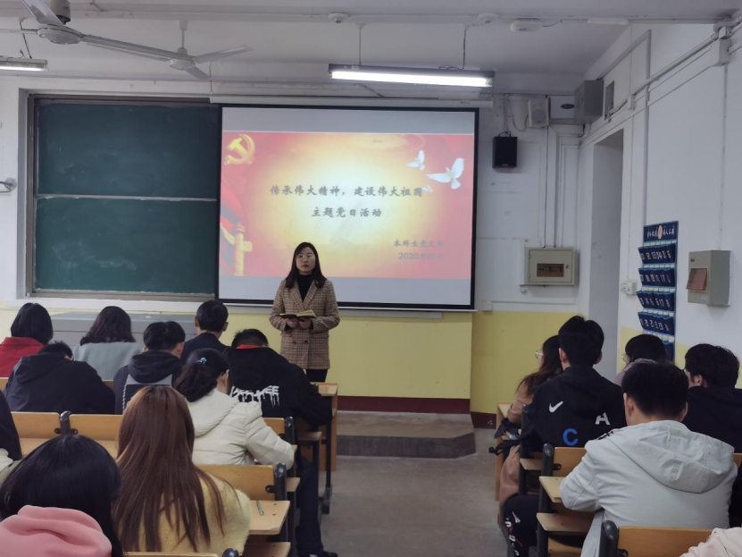 本科生党支部于物理楼210教室开展“传承伟大精神,建设伟大祖国”主题党日活动,本科生党支部书记王琼,辅导员李爱国、颜冲、邱金芝、孔瑞、王衡出席会议,本科生党支部全体党员参加。本次活动由组织委员颜冲同志主持。