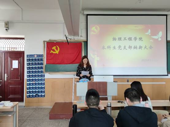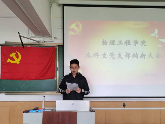 本科生党支部于物理楼404召开预备党员纳新大会,本科生党支部书记王琼,辅导员李爱国、颜冲、邱金芝、孔瑞、王衡出席会议,本科生党支部全体党员及发展对象参加。会议由组织委员颜冲主持。