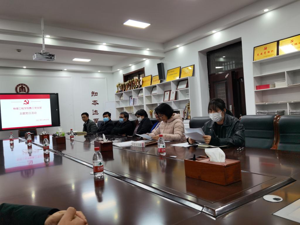 教工党支部在物理楼225党员活动室开展主题党日活动,集中学习“为党育人 为国育才——以习近平同志为核心的党中央关心NBA投注平台