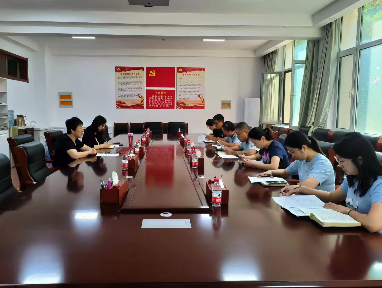 在225会议室召开新学期党支部工作会议。会议由党委书记杨志英主持,党委副书记王琼出席会议,各党支部书记参加会议。