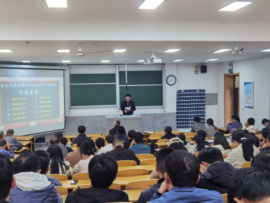 其次,于健带领全院教工集体重温了《新时代高校教师职业行为十项准则》,并对一些条目进行了解读。会议通报了近期高校违反教师职业行为十项准则典型案例和违反师德师风准则的典型案例,用鲜活的事例警示全院教师时刻保持清醒头脑,坚决守牢党风廉政建设、思想政治建设、师德师风建设的底线。