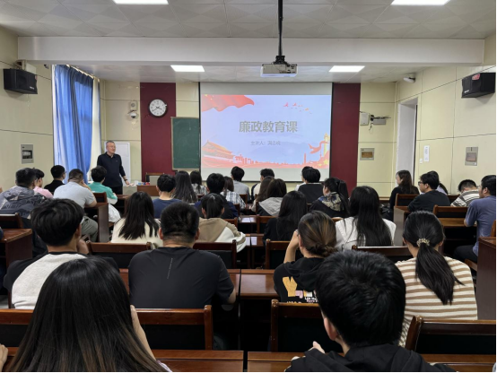 院长满忠晓以“做新时代廉洁自律表率”为题,在物理楼311教室为2023级学生讲授廉政课。