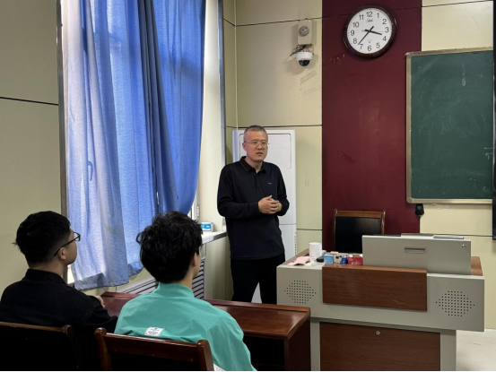 院长满忠晓在物理楼311教室为2023级物理学4班全体学生讲授形势与政策课。