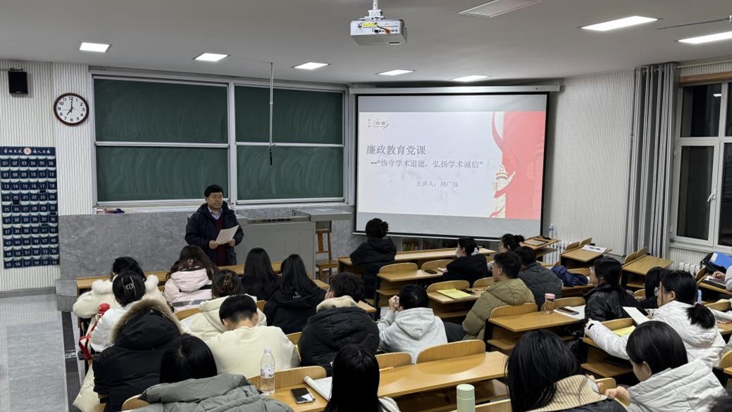 纪检委员刘广强以“恪守学术道德,弘扬学术诚信”为题,为2024级研究生讲授廉政教育党课。