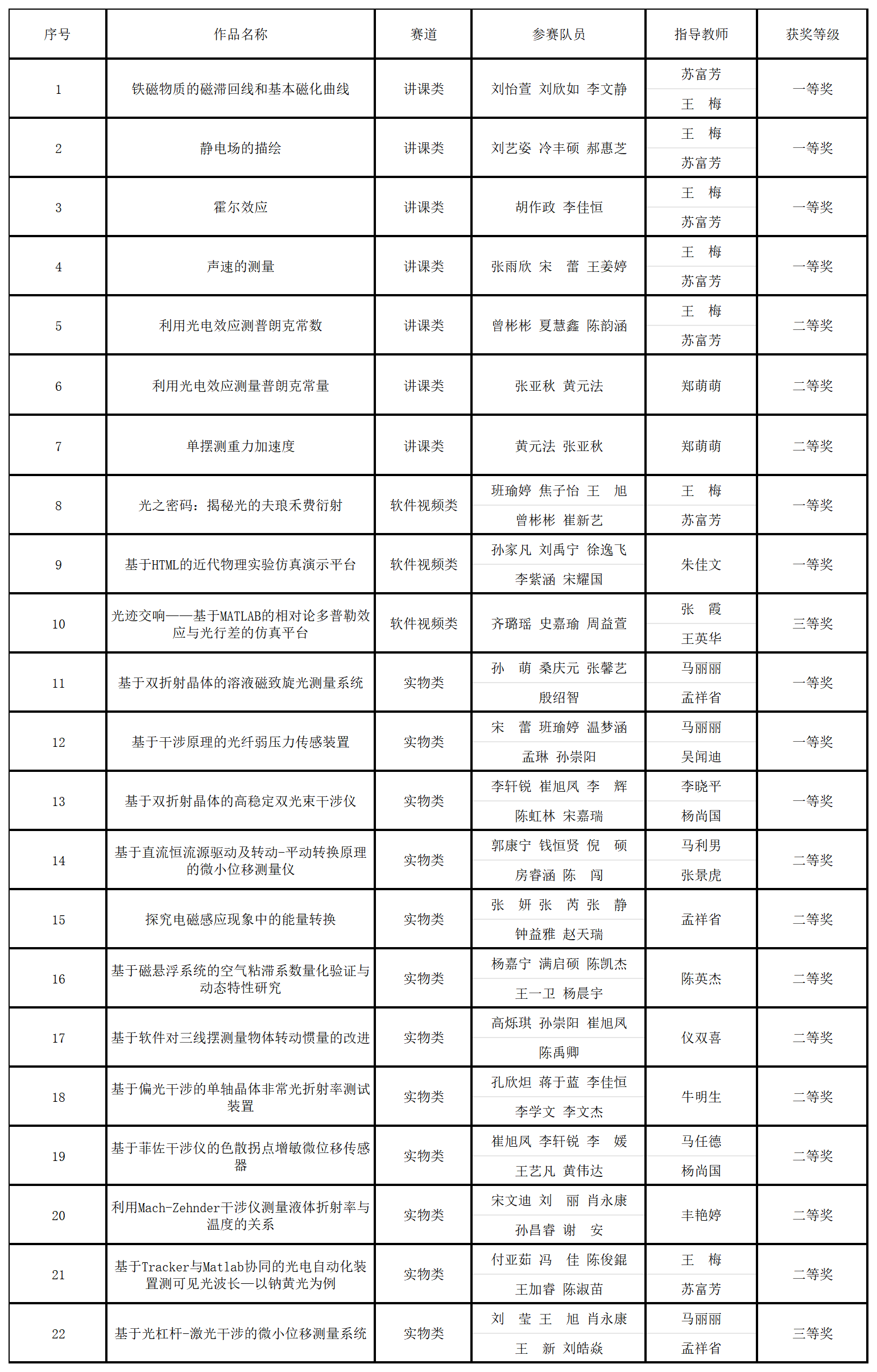 2025年山东省大学物理实验大赛获奖统计表