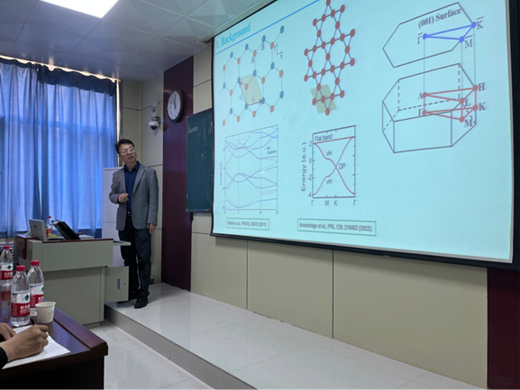 交流访问并作了题为“Superconductivity, CDW, and topological state in hexagonal materials”的学术报告,报告关注了具有丰富的物态的六方晶格体系。王教授课题组采用第一性原理计算、瓦尼尔轨道投影以及BCS理论等,研究了Pb插层1T-TiSe2、Cu2Si、CaB6、单层Sn以及Kagome晶格135及166体系的超导电性、CDW和拓扑态,分析了金属插层、压力、应变及载流子掺杂等对这些物态的调控,预测了一系列新体系,也为实验报道体系提供了详细的理论解释。