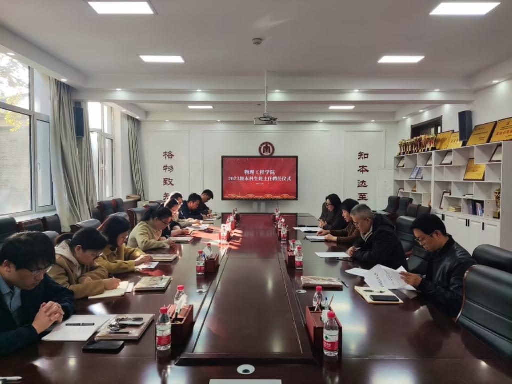 班主任工作情况,充分肯定班主任在学生管理、人才培养和学风建设等方面的作用。指出班主任工作要尽职责、勤创新、多沟通,努力成为学生成长成才道路上的引路人。聘书颁发后,张英杰作为优秀班主任代表分享经验,他表示班主任要时刻关注学生动态,做到“有爱心、有感情、有投入”,积极主动与学生沟通交流,切实帮助学生解决问题。新聘班主任邢相灼表示今后会扎实工作,走进学生,充分发挥学生与老师间沟通的桥梁纽带作用。最后,满忠晓总结发言,指出班主任要尽职尽责,发挥专业优势,做好学生学业指导和职业规划。