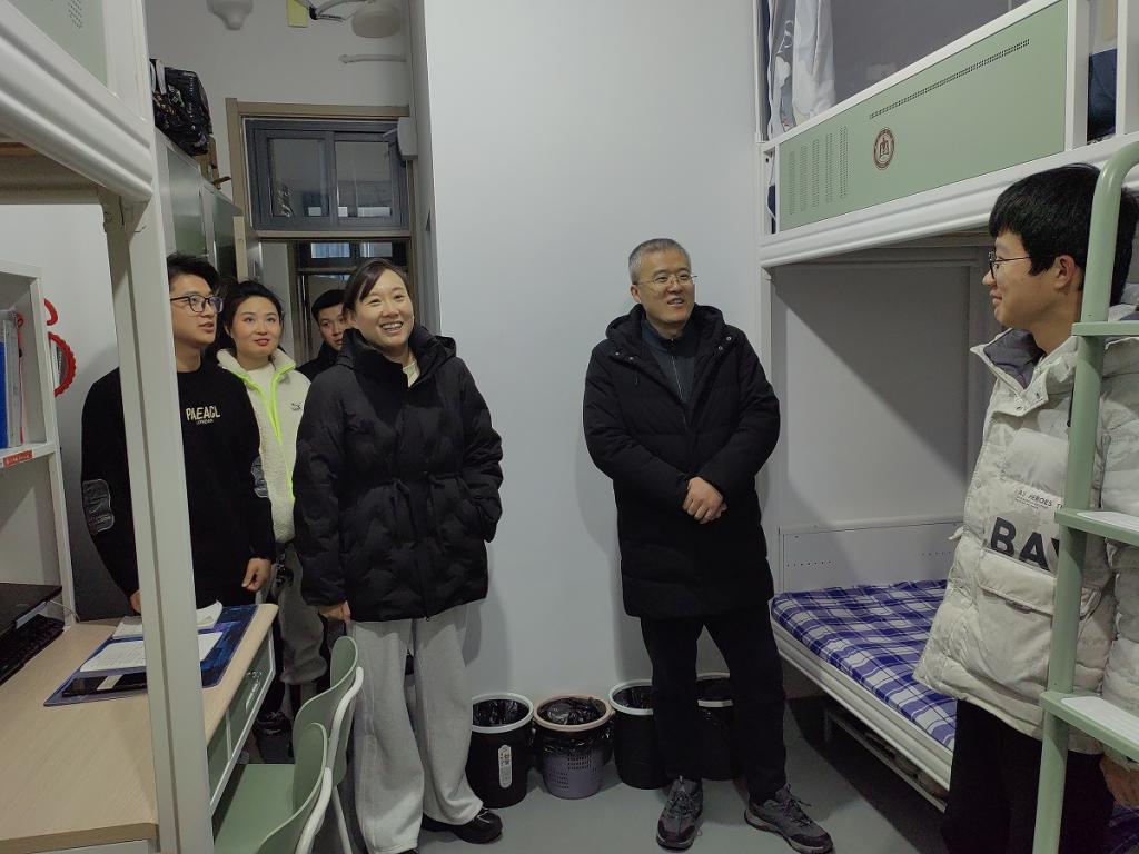 领导老师与学生深入交流,鼓励学生全面发展,及时为新学期做好安排和规划;对宿舍卫生和安全用电问题进行检查,强调宿舍设施安全的重要性;叮嘱学生对宿舍出现的各项问题及时反映,打造良好的宿舍生活环境。