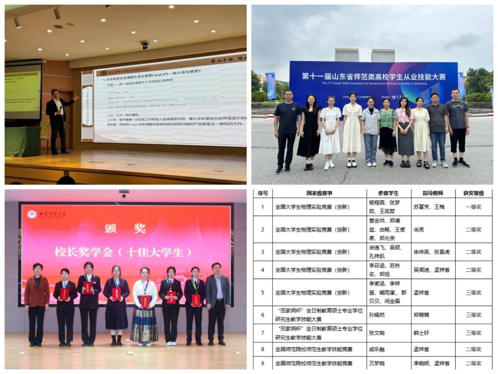 累计获批推荐山东省优秀博士学位论文1篇,山东省优秀硕士学位论文2篇,山东省研究生创新成果2项。学科教学(物理)专业研究生积极参加本领域各类教学比赛,累计获得一等奖6项,二等奖8项,三等奖9项,展现了NBA投注平台