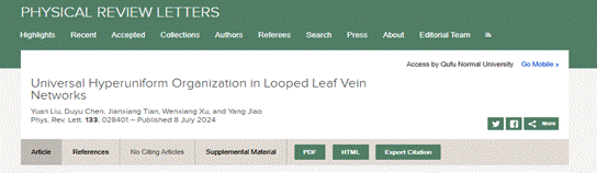 教师在国际知名期刊上累计发表高水平研究论文200余篇。其中,田建祥教授课题组在复杂系统的结构性质研究方面取得重要进展,相关成果发表于物理学科旗舰期刊《物理评论快报》封面(Physical Review Letters,133, 028401, 2024),这是第一篇在《物理评论快报》上发表的以NBA投注平台