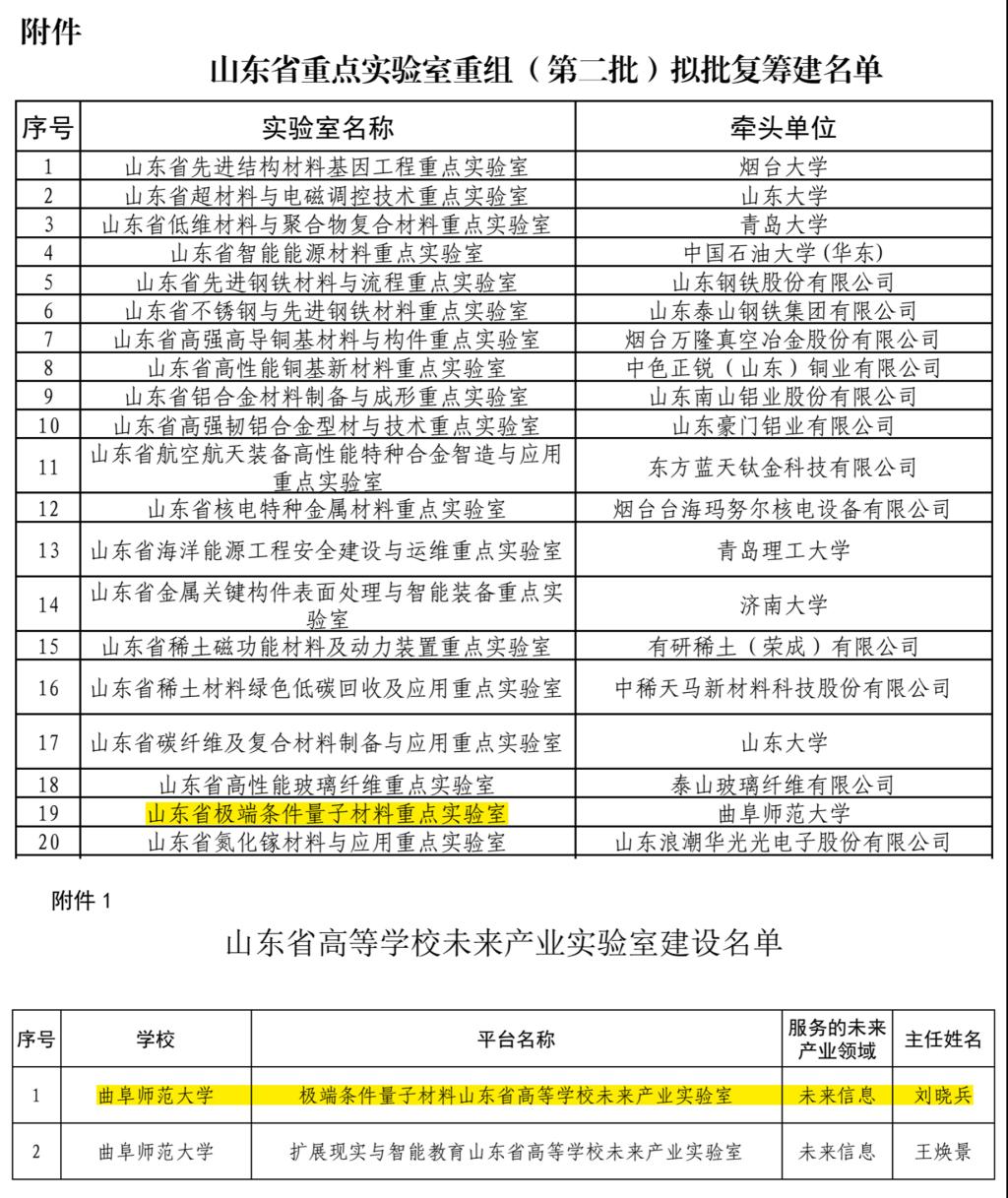 未来产业实验室”;2024年12月,“山东省极端条件量子材料重点实验室”获批山东省重点实验室重组(第二批)立项建设,为未来量子科技和信息技术的发展提供重要的物质和技术支持。